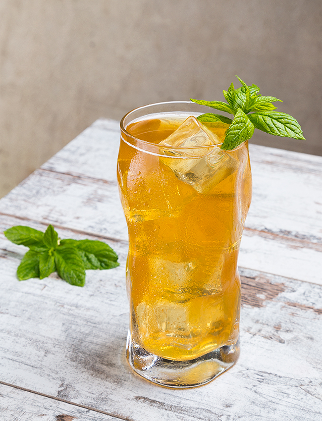 Servire con una fetta di pesca o una foglia di menta